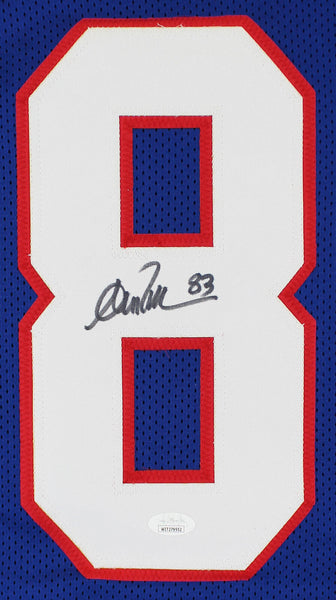 This Autographed Blue Pro Style Framed Jersey has been Personally Signed by Andre Reed of the Buffalo Bills. This item is 100% Authentic to include a Certificate of Authenticity (COA) / hologram by JSA Witness. This is a JSA Witnessed Protection Program item which means a JSA representative was present when this item was being signed. This is a stock item. We conducted an autograph signing with Andre Reed and we have several of these available. The one you will receive will be of equal quality to the one pictured. This item can be verified through JSA Witness. This jersey has been professionally framed to approximately 27x32 inches. This is a X-Large sized, non-branded, custom-stitched Framed Jersey. These jerseys are framed to order, it takes approximately 3-4 business days for framing to be completed.