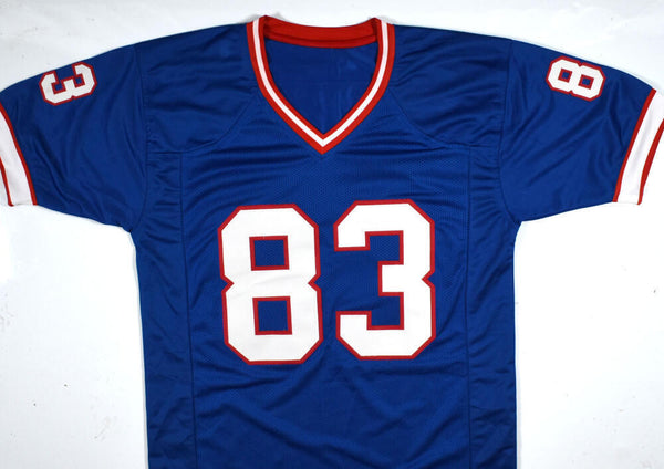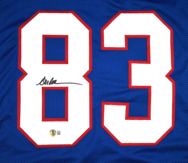 Andre Reed Autographed Blue Pro Style Jersey - Beckett W Hologram *Black THIS IS NOT AN NFL JERSEY. THIS HAS NO TAGS, NO LOGOS, NO EMBLEMS. This is a hand autograph of Andre Reed on a custom (Non Name Brand) Authentic style Jersey with stitched letters and numbers. This item has a Beckett Witnessed Authentication, which comes with a Beckett numbered hologram and a QR code for verification. You can view this item on the Beckett Authentication website, it shows when and where the item was signed. It was signed either at a public autograph appearance or a private signing. This is a stock photo of the item. Although you may not receive this exact item, the item you receive is virtually identical and brand new in great shape. Jersey size is XL.