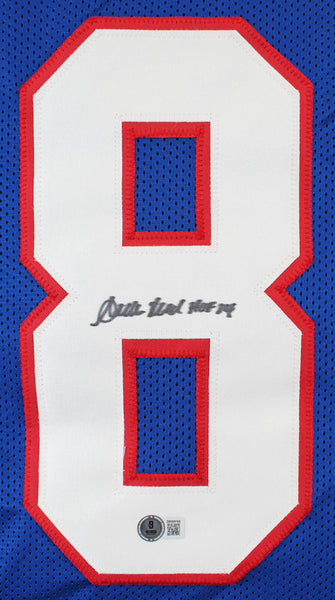 This Autographed Navy Pro Style Jersey with the inscription of "HOF 14" has been Personally Signed by Andre Reed of the Buffalo Bills. This item is 100% Authentic to include a hologram by Beckett Authentication Services. This item will come with an affixed Beckett Authentication Services (BAS) authentication sticker, which includes a scannable QR code to verify authenticity. Please note that Beckett no longer provides serial-numbered COA cards, and the attached BAS sticker will serve as the complete authentication for this item. This is a BAS Witnessed Protection Program item which means a Beckett Authentication Service representative was present when this item was being signed. We conducted an autograph signing with Andre Reed where multiples of the same item were signed. While the photographs are representative of this item, the size, placement and strength of the signature may vary. Each item is hand signed, therefore, each autograph is unique. This item can be verified through BAS Witnessed. This is a X-Large sized, non-branded, custom-stitched Jersey.
