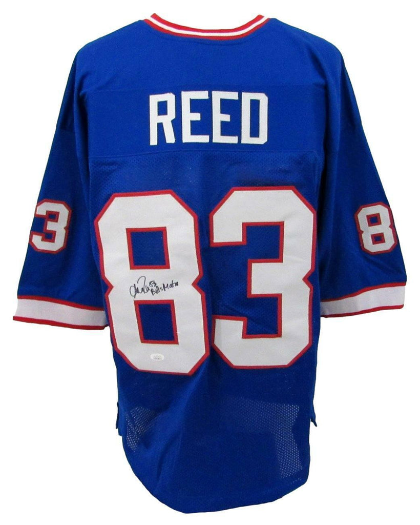 Andre Reed HOF Autographed Football Jersey Blue Custom Buffalo Bills Size XL. This jersey is authenticated by JSA and includes their Tamper-proof Hologram Sticker and Certificate of Authenticity.