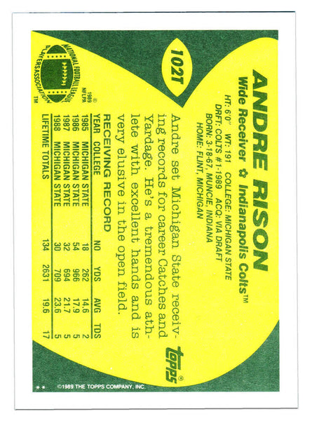 Andre Rison Autographed Colts 1989 Topps Football Rookie Card #102T (SS COA)