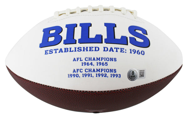 This Autographed Rawlings White Panel Logo Football W/ Uv Mirrored Back Acrylic Display Case has been Personally Signed by Andre Reed, Jim Kelly & Thurman Thomas of the Buffalo Bills. This item is 100% Authentic to include a hologram by Beckett Authentication Services. This item will come with an affixed Beckett Authentication Services (BAS) authentication sticker, which includes a scannable QR code to verify authenticity. Please note that Beckett no longer provides serial-numbered COA cards, and the attached BAS sticker will serve as the complete authentication for this item. This is a BAS Witnessed Protection Program item which means a Beckett Authentication Service representative was present when this item was being signed. We conducted an autograph signing with Andre Reed, Jim Kelly & Thurman Thomas where multiples of the same item were signed. While the photographs are representative of this item, the size, placement and strength of the signature may vary. Each item is hand signed, therefore, each autograph is unique. This item can be verified through BAS Witnessed.