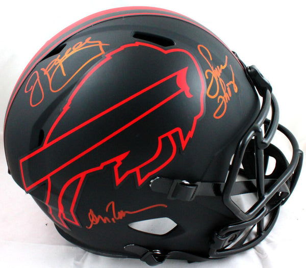 Kelly/Reed/Thomas Autographed Buffalo Bills F/S Eclipse Helmet - JSA W Auth *Red These are hand autographs of Jim Kelly, Andre Reed and Thurman Thomas of the Buffalo Bills on a Riddell Football Full Size Eclipse Speed Replica Helmet. This item has a James Spence Witness Protection Authentication, which comes with a numbered sticker and a matching JSA Certificate of Authenticity. You can view this item on the SpenceLOA website and it shows when and where the item was signed. It was signed either at a public autograph appearance or a private signing. This is a stock photo of the item. Although you may not receive this exact item, the item you receive is virtually identical and brand new in great shape.