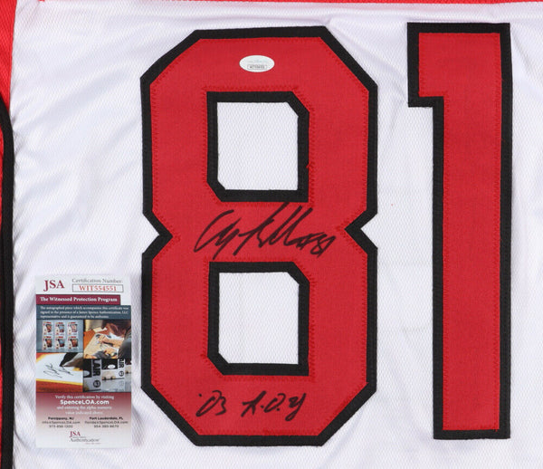 Custom on-field style jersey with everything sewn on, size XL. Jersey has been hand-signed in black felt-tip pen by Anquan Boldin. The lot / autograph(s) includes an official James Spence Authentication (JSA) hologram and matching COA for authenticity purposes. The signing of this item was witnessed by JSA.Authentication: JSA COA