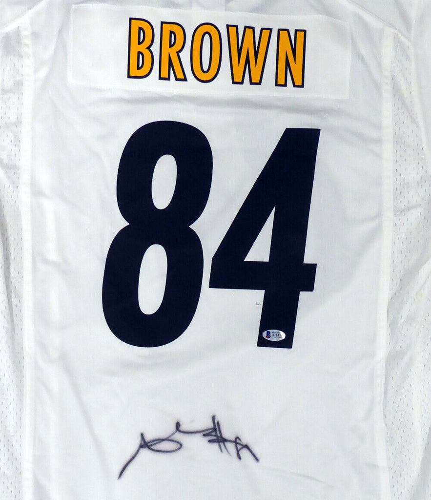 This is a Nike Pittsburgh Steelers Jersey that has been hand signed by Antonio Brown. The jersey is size XL. This item has been certified authentic by Beckett (BAS) and comes with their tamper-proof sticker and matching certificate of authenticity. A A NOTE: A The signature is bleeding into the jersey, causing a purple haze around the autograph, as shown in the pictures.