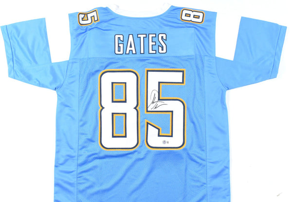THIS IS NOT AN NFL JERSEY. THIS HAS NO TAGS, NO LOGOS, NO EMBLEMS. This is a hand autograph of Antonio Gates of the Chargers on a Custom Made (non-name brand) Authentic Style Jersey with stitched letters and numbers. This item has a Beckett Witnessed Authentication, which comes with a Beckett numbered sticker hologram and a QR Code for verification. You can view this item on the Beckett Authentication website. It was signed either at a public autograph appearance or a private signing. This is a stock photo of the item. Although you may not receive this exact item, the item you receive is virtually identical and brand new in great shape. Jersey size is XL. THIS IS NOT AN NFL JERSEY. THIS HAS NO TAGS, NO LOGOS, NO EMBLEMS. This is a hand autograph of Antonio Gates of the Chargers on a Custom Made (non-name brand) Authentic Style Jersey with stitched letters and numbers. This item has a Beckett Witnessed Authentication, which comes with a Beckett numbered sticker hologram and a QR Code for verification. You can view this item on the Beckett Authentication website. It was signed either at a public autograph appearance or a private signing. This is a stock photo of the item. Although you may not receive this exact item, the item you receive is virtually identical and brand new in great shape. Jersey size is XL.