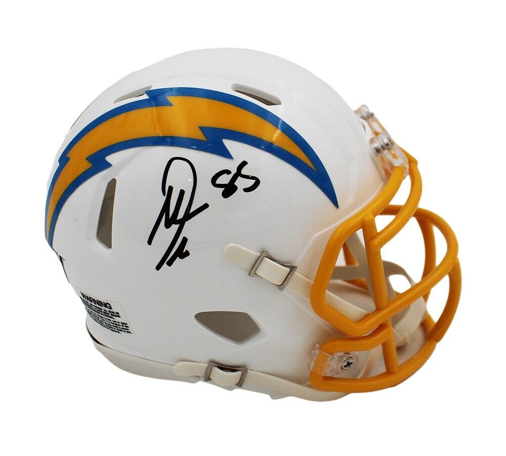 A Los Angeles Chargers Speed NFL Mini Helmet hand signed by Antonio Gates. The item and signature are in excellent condition. Antonio Gates is a tight end who has been selected into the Pro Bowl eight times and is a five-time All-Pro. AUTHENTICATION: The item is accompanied by a Beckett Serial Numbered and Databased Hologram.