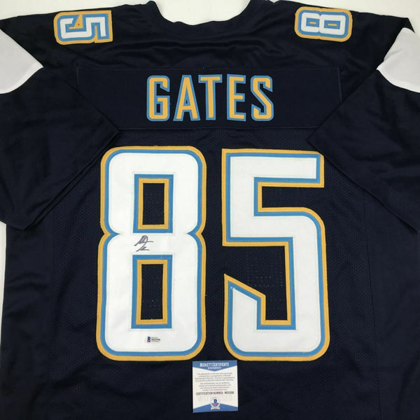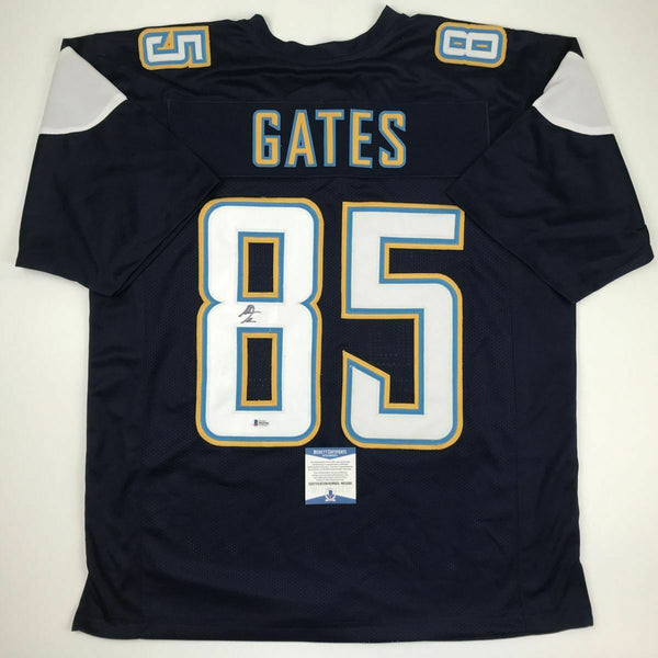 Autographed/Signed ANTONIO GATES Los Angeles LA Dark Blue Jersey Beckett BAS COA This is a custom jersey and was not manufactured by or in any manner associated with any professional sports league or manufacturer. This custom jersey carries no professional sports league designation. The item is intended to be an autographed collectible. Reference of team in the title is to allow the purchaser a point of association. The custom jersey displays the name, number and authenticated signature of the player. This item in no way is affiliated with or connected to any professional sports organization. The autograph, as always is guaranteed to be authentic and has been certified as authentic by a third-party, trusted authenticator. Size is XL unless otherwise noted.
