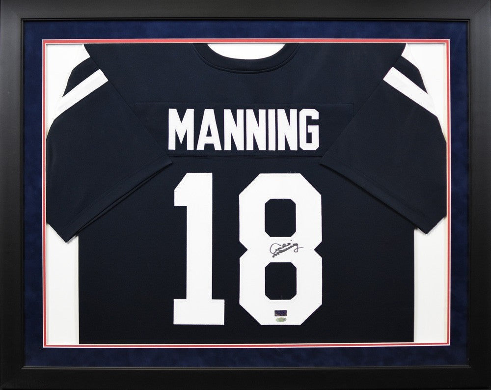 Archie Manning, former All-American quarterback for the Ole Miss Rebels, has hand signed this navy custom jersey at a private signing. Jersey is size XL and all letters/numbers are sewn-on. It comes professionally framed in a black wood frame and double matted in Ole Miss colors. This item comes with a certificate of authenticity (COA) from Steiner Sports, one of the leaders in the industry. You will receive a credit card style COA along with an official Steiner Sports hologram on the jersey.Item pictured may not be the exact item you will receive. It will be similar quality, and we guarantee your satisfaction.