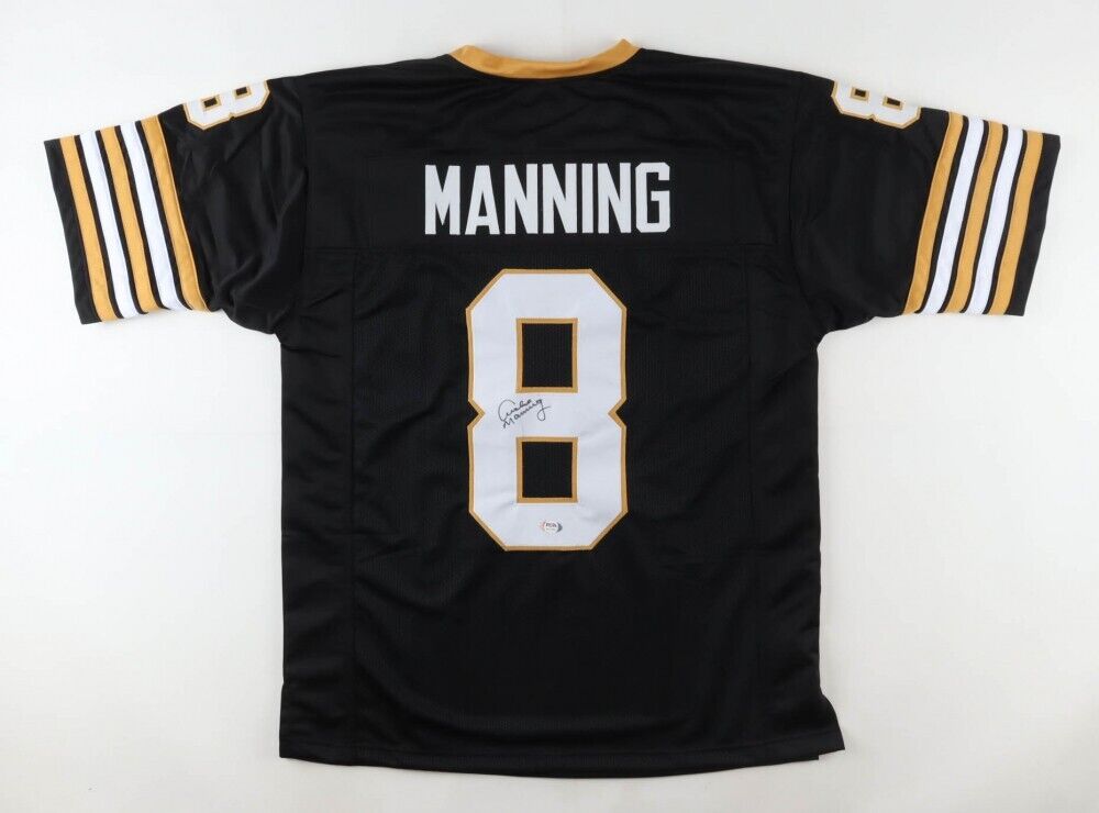 Custom on-field style jersey. Everything is sewn on, size XL. Hand-signed by Archie Manning.The lot / autograph(s) includes an official PSA/DNA hologram for authenticity purposes.Authentication: PSA Hologram