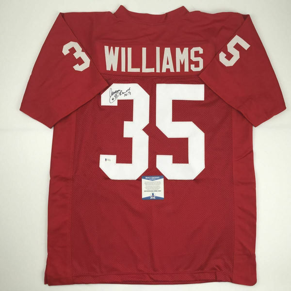 Autographed/Signed AENEAS WILLIAMS Arizona Red Football Jersey Beckett BAS COA This is a custom jersey and was not manufactured by or in any manner associated with any professional sports league or manufacturer. This custom jersey carries no professional sports league designation. The item is intended to be an autographed collectible. Reference of team in the title is to allow the purchaser a point of association. The custom jersey displays the name and number of the player. This item in no way is affiliated with or connected to any professional sports organization. Size is XL unless otherwise noted.