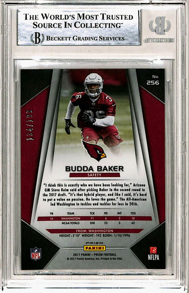 Budda Bakers Signed 2017 Prizm Light Blue #256 Trading Card Slab Beckett 43296 The number in the listing title is just an inventory sku for our records and is not the authentication number. The item pictured is a stock photo unless otherwise noted. This is an Arizona Cardinals 2017 Prizm Light Blue #256 Slabbed Trading Card that was personally autographed by Budda Baker. Includes a certificate of authenticity from Beckett Authentication Services (BAS) and Denver Autographs.