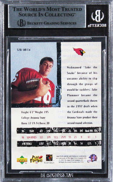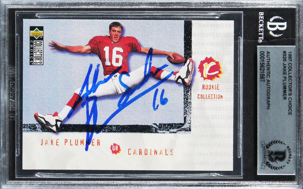 This Autographed 1997 Collector's Choice #320 Card has been Personally Signed by Jake Plummer of the Arizona Cardinals. This item is 100% Authentic, it comes slabbed and authenticated by Beckett Authentication Services. The authenticity can be verified on Beckett Authentication Services website.