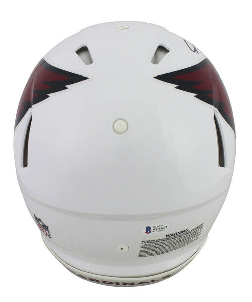 This Autographed Authentic Proline F/S Speed Helmet has been Personally Signed by Kyler Murray of the Arizona Cardinals. This item is 100% Authentic to include a Certificate of Authenticity (COA) / hologram by Beckett Authentication Services. This is a BAS Witnessed Protection Program item which means a Beckett Authentication Service representative was present when this item was being signed. This is a stock item. We conducted an autograph signing with Kyler Murray and we have several of these available. The one you will receive will be of equal quality to the one pictured. This item can be verified through BAS Witnessed.