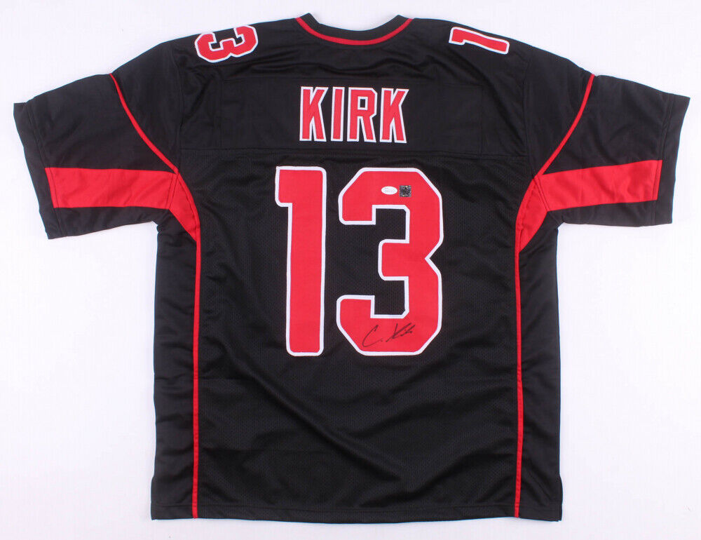 Custom on-field style jersey. Everything is sewn on, size XL. Hand-signed in black felt-tip pen by Christian Kirk. The lot / autograph(s) includes an official James Spence Authentication (JSA) hologram and matching COA for authenticity purposes. The signing of this item was witnessed by JSA.Authentication: JSA COA