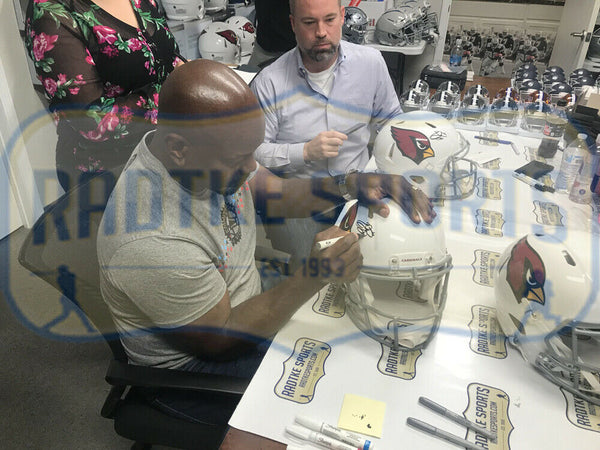 An Arizona Cardinals Speed Authentic NFL Helmet hand signed by Emmitt Smith. The item and signature are in excellent condition - Emmitt is a former NFL running back. He was inducted into the Pro Football Hall of Fame in 2010, 3x Super Bowl Champion, Super Bowl MVP (XXVIII), 8x Pro Bowler, 4x First-Team All Pro - AUTHENTICATION: The item is accompanied by a Prova Certificate of Authenticity - Prova Serial Numbered and Databased Hologram - Picture of Emmitt from the Signing - Emmitt Smith Player Hologram