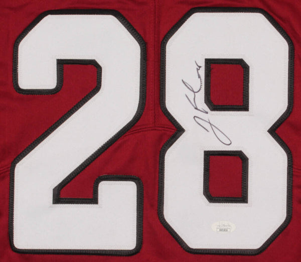 Custom on-field style jersey. Everything is sewn on, size L. Hand-signed in black felt-tip pen by Justin Bethel (Arizona Cardinals). The lot / autograph(s) includes an official James Spence Authentication (JSA) hologram and matching COA for authenticity purposes.Authentication: JSA COA