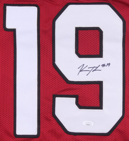 Custom on-field style jersey. Everything is sewn on, size XL. Hand-signed in black felt-tip pen by KeeSean Johnson. The lot / autograph(s) includes an official James Spence Authentication (JSA) hologram and matching COA for authenticity purposes.Authentication: JSA COA