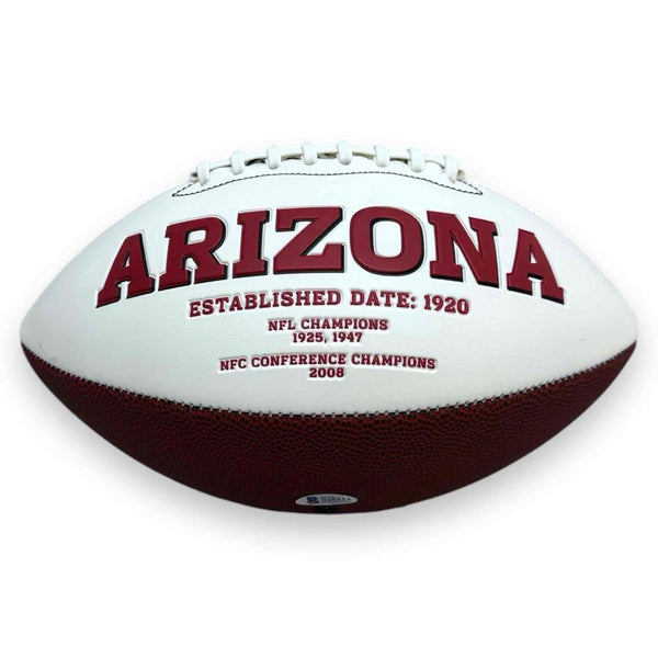 ATHLETE: Kyler Murray ITEM: Arizona Cardinals Logo Football AUTHENTICATION: This item comes with a Beckett serial #'ed sticker affixed to the item. To ensure authenticity, the hologram can be reviewed online. This process helps to ensure that the product purchased is authentic and eliminates any possibility of duplication or fraud. You will receive the exact ball pictured. Sold As-Is. Please refer to pictures.