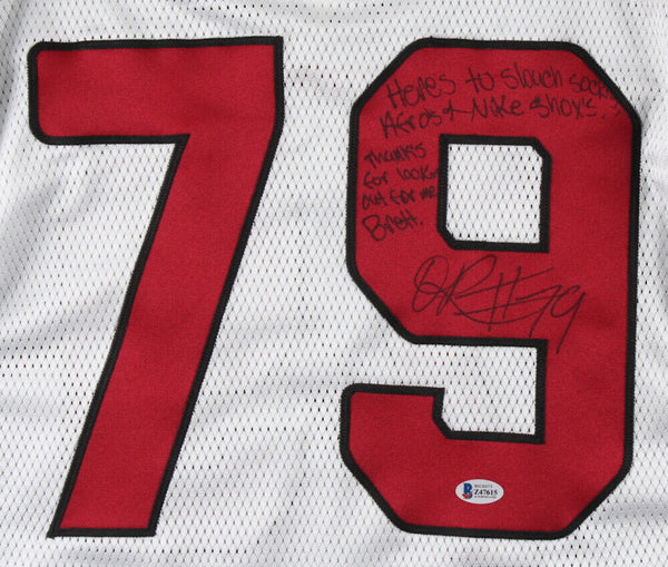 Reebok on-field style jersey. Everything is sewn on, size 56. Has been hand-signed by Oliver Ross (Arizona Cardinals). The lot / autograph(s) includes an official Beckett Authentication Services serially-numbered hologram and matching COA for authenticity purposes.Authentication: Beckett COA