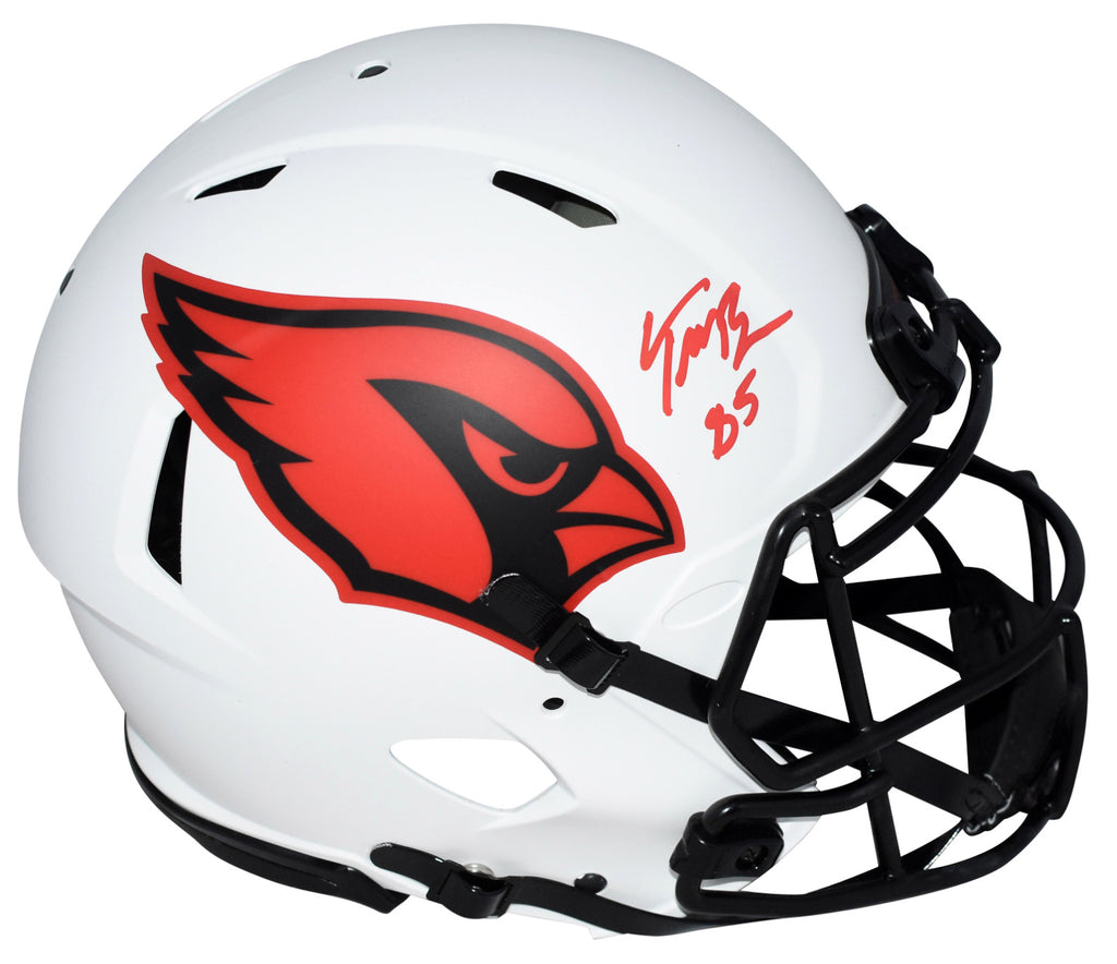 Trey McBride, Pro Bowl tight end for the Arizona Cardinals, has hand signed this Cardinals Riddell Speed Lunar full-size authentic helmet at a private signing. This helmet is fully padded inside like the ones worn on the field. This item is authenticated by Beckett Authentication Services and was signed in the presence of one of their representatives. Their tamper-evident hologram featuring a QR code and serial number is on the item. The authenticity can be verified online by entering the serial number or scanning the QR code.Item pictured may not be the exact item you will receive. It will be similar quality, and we guarantee your satisfaction.