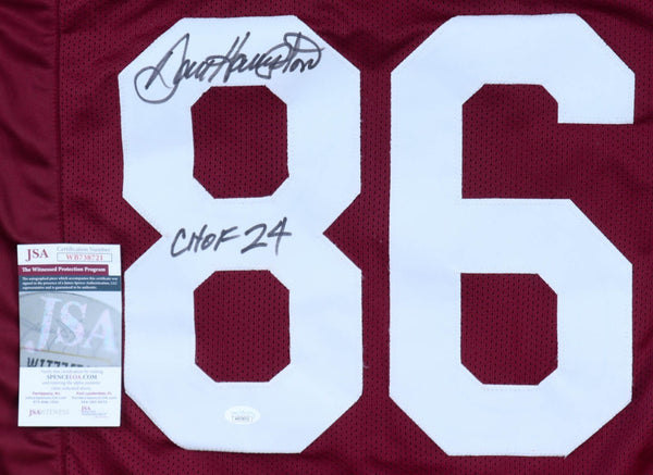 Custom on-field style jersey is size Adult XL. Everything is sewn on. Hand-signed and inscribed by Dan HamptonThe autograph(s) includes an official James Spence Authentication (JSA) hologram and matching COA for authenticity purposes. The signing of this item was witnessed by JSA. Authentication: JSA COA