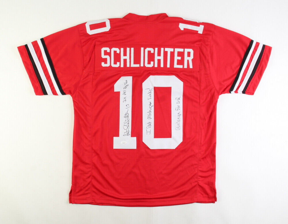 Art Schlichter Signed Ohio State Buckeye Jersey Inscribed "I Bet Michigan Sucks"