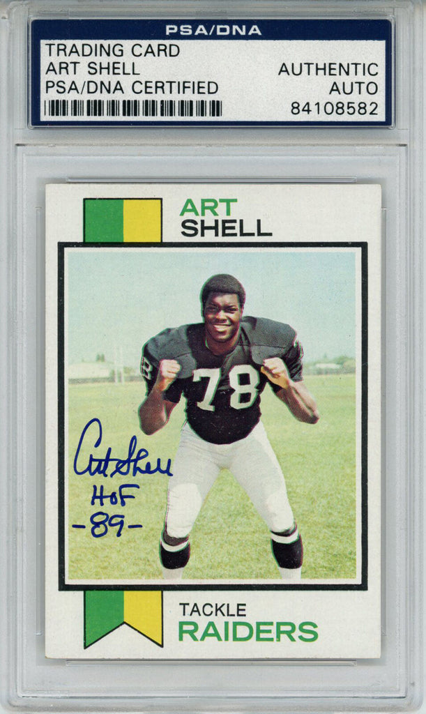 Art Shell Autographed 1973 Topps #77 Trading Card HOF PSA Slab 43578 The number in the listing title is just an inventory sku for our records and is not the authentication number. This is the exact item that you will receive so please see pictures for condition. This is a trading card that was personally autographed by Art Shell with HOF inscription. This has been professionally slabbed by Professional Authentication Services (PSA) and includes a certificate of authenticity from Denver Autographs.
