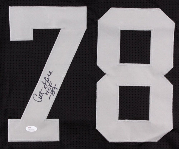 Custom on-field style jersey. Everything is sewn on, size L. Hand-signed and inscribed in black felt-tip pen by Art Shell (HOF). The autograph includes an official James Spence Authentication (JSA) hologram and matching COA for authenticity purposes. The signing of this item was witnessed by JSA.Authentication: JSA COA