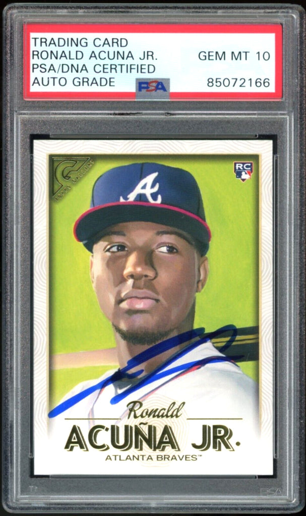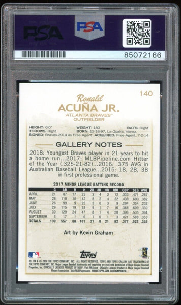 2018 Topps Gallery #140 Ronald Acuna Jr. RC On Card PSA/DNA Auto GEM MINT 10