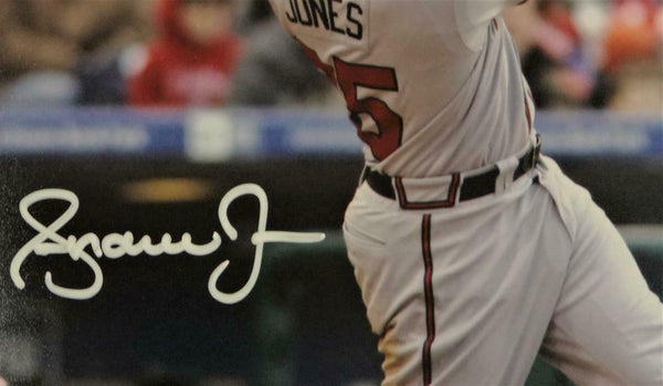 Andruw Jones Signed Atlanta Braves 8x10 Batting Post Swing PF- JSA W Auth *White This is a hand autographed 8x10 Photo File Photo of Andruw Jones of the Atlanta Braves. This item has a James Spence Witness Authentication, which comes with a numbered sticker and a matching Certificate of Authenticity. You can view this item on the SpenceLOA website, it shows when and where the item was signed. It was signed either at a public autograph appearance or a private signing. This is a stock photo of the item. Although you may not receive this exact item, the item you receive is virtually identical and brand new in great shape.
