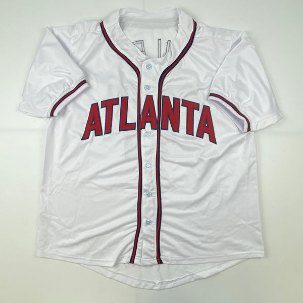 Autographed/Signed Austin Riley Atlanta White Baseball Jersey Beckett BAS COA Jersey has no brand names or logos. This is a custom jersey and was not manufactured by or in any manner associated with any professional sports league or manufacturer. This custom jersey carries no professional sports league designation. The item is intended to be an autographed collectible. The custom jersey displays the name and number of the player. This item in no way is affiliated with or connected to any professional sports organization. Size is XL.