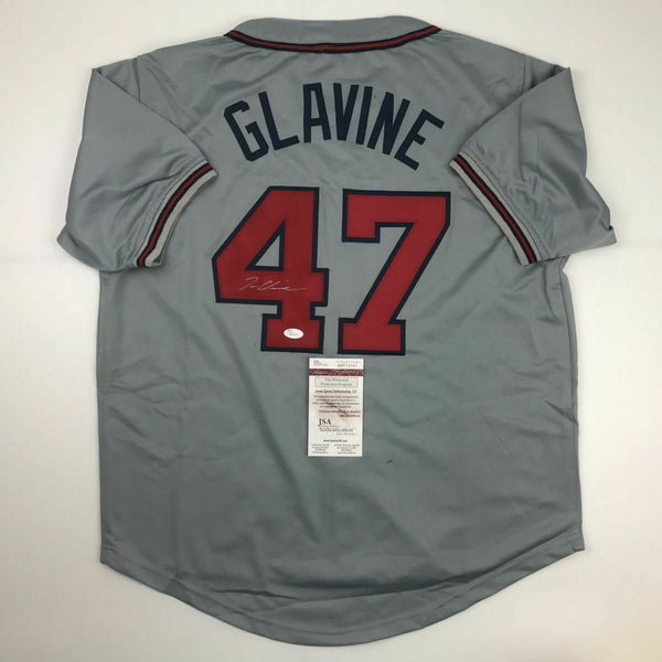 Autographed/Signed TOM GLAVINE Atlanta Grey Baseball Jersey JSA COA Auto This is a custom jersey and was not manufactured by or in any manner associated with any professional sports league or manufacturer. This custom jersey carries no professional sports league designation. The item is intended to be an autographed collectible. Reference of team in the title is to allow the purchaser a point of association. The custom jersey displays the name, number and authenticated signature of the player. This item in no way is affiliated with or connected to any professional sports organization. The autograph, as always is guaranteed to be authentic and has been certified as authentic by a third-party, trusted authenticator. Size is XL unless otherwise noted.