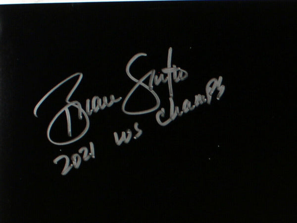 An Atlanta Braves Unframed 16x20 Photo-On Bench w/Banner hand signed by Brian Snitker. The item and signature are in excellent condition. In addition to signing his name, Brian also inscribed " WS Champs" on the item. Brian is a World Series champion (2021).Brian a NL Manager of the Year (2018). Brian as a coach with the Braves since (1985,1988-1990,2007-2013).AUTHENTICATION: The item is accompanied by a Certificate of Authenticity - Serial Numbered and Databased Hologram - Picture of Brian from the signing