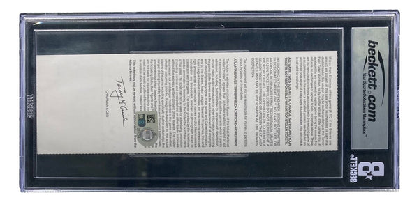 Featured is a Chipper Jones signed Atlanta Braves game ticket, inscribed "Career HR #431". This ticket has been hand signed by Jones and has been authenticated and encapsulated by Beckett, receiving an autograph grade of 10. This ticket was from June 26, 2010 when the Atlanta Braves took on the Detroit Tigers. On this day, Chipper Jones hit career home run number 431. This ticket would make a great addition to any sports memorabilia collection! SPECIFICATIONS Autographed By: Chipper Jones Team: Atlanta Braves Sport: Baseball Authentication: Beckett Grading Services