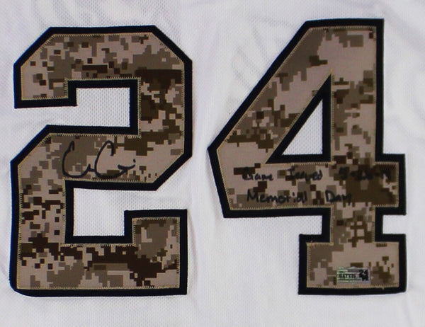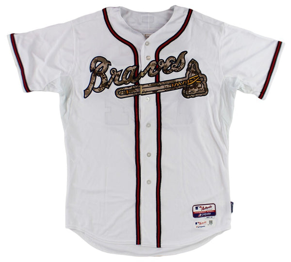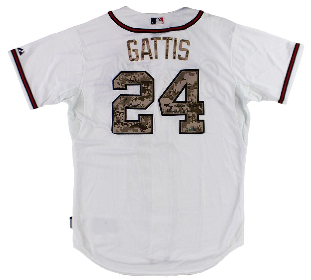 A Game Issued Atlanta Braves White Memorial Day Home Jersey hand signed by Evan Gattis. The item and signature are in excellent condition. In addition to signing his name, Evan also inscribed "Game Used Memorial Day" on the jersey. All Evan Gattis Game Used Items sold by were obtained directly from Evan. Authentication: The item is accompanied by a Evan Gattis Exclusive Certificate of Authenticity - Evan Gattis Exclusive Serial Numbered & Databsed Hologram - Picture of Evan from the Signing