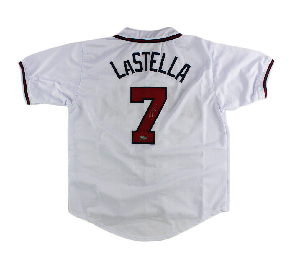 An Atlanta Custom White Jersey hand signed by Tommy LaStella. Tommy is an MLB infielder. He has played for the Braves, Cubs, Angels, Athletics & the Giants throughout his career. He is an All Star and World Series Champion. AUTHENTICATION: The item is accompanied by a Certificate of Authenticity - Serial Numbered & Databased Hologram - A picture of Tommy from the signing.