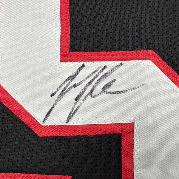 Autographed/Signed Jessie Tuggle Atlanta Black Football Jersey JSA COA Jersey has no brand names or logos. This is a custom jersey and was not manufactured by or in any manner associated with any professional sports league or manufacturer. This custom jersey carries no professional sports league designation. The item is intended to be an autographed collectible. The custom jersey displays the name and number of the player. This item in no way is affiliated with or connected to any professional sports organization. Size is XL.