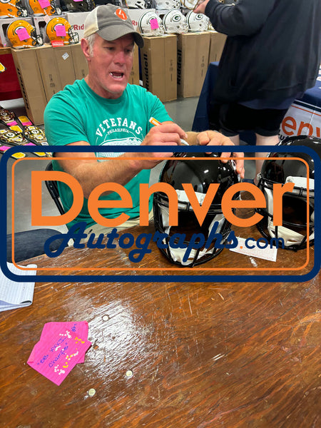 The number in the listing title is just an inventory sku for our records and is not the authentication number. This is a stock photo, unless otherwise noted. This is an Atlanta Falcons Throwback 1990-2002 Full Size Authentic Helmet that was personally autographed by Brett Favre. Includes a certificate of authenticity from Beckett Authentication Services (BAS) and Denver Autographs.