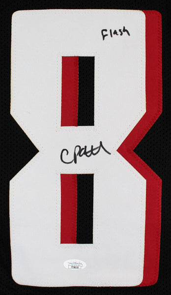 This Autographed Black Pro Style Jersey with the inscription of "Flash" has been Personally Signed by Cordarrelle Patterson of the Atlanta Falcons. This item is 100% Authentic to include a Certificate of Authenticity (COA) / hologram by JSA. We conducted an autograph signing with Cordarrelle Patterson where multiples of the same item were signed. While the photographs are representative of this item, the size, placement and strength of the signature may vary. Each item is hand signed, therefore, each autograph is unique. This item can be verified through JSA. This is a X-Large sized, non-branded, custom-stitched Jersey.