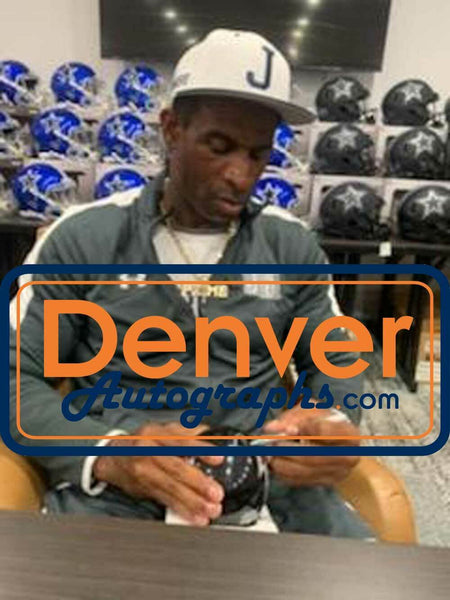 Deion Sanders Autographed Atlanta Falcons TB 2003-19 Mini Helmet BAS 34583 The number in the listing title is just an inventory sku for our records and is not the authentication number. The item pictured is a stock photo unless otherwise noted. This is a Atlanta Falcons throwback 2003-19 mini helmet that was personally autographed by Deion Sanders. Includes a certificate of authenticity from Beckett Authentication Services (BAS) and Denver Autographs.