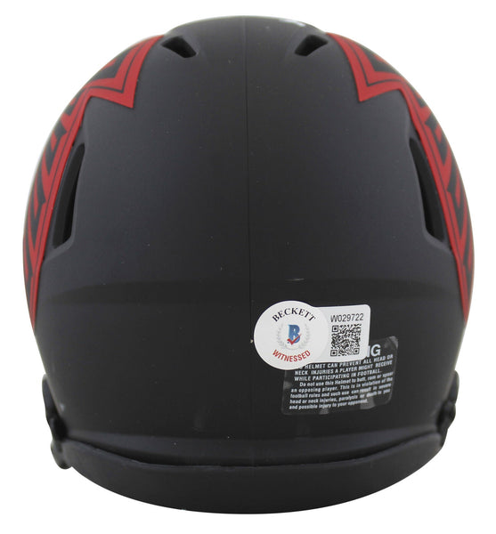 This Autographed Alternate Eclipse Speed Mini Helmet has been Personally Signed by Steven Jackson of the Atlanta Falcons. This item is 100% Authentic to include a hologram by Beckett Authentication Services. This item may come with the new Beckett Authentication hologram that has a scannable QR code rather than the traditional COA. If you would like to have a COA, you are welcome to reach out to Beckett for a printed certification once you receive your item. This is a BAS Witnessed Protection Program item which means a Beckett Authentication Service representative was present when this item was being signed. We conducted an autograph signing with Steven Jackson where multiples of the same item were signed. While the photographs are representative of this item, the size, placement and strength of the signature may vary. Each item is hand signed, therefore, each autograph is unique. This item can be verified through BAS Witnessed.