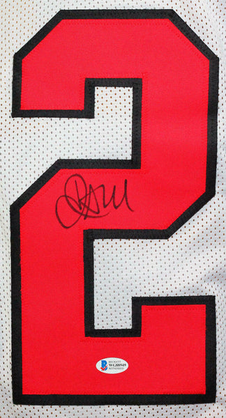 Jamal Anderson Autographed White Pro Style Jersey- Beckett W *Black THIS IS NOT AN NFL JERSEY. THIS HAS NO TAGS, NO LOGOS, NO EMBLEMS. This is a Hand Autographed Jersey of Jamal Anderson. This is Custom Made (Non Name Brand) Authentic Style (Stitched Letters and Numbers). This item has a Beckett Witnessed Authentication, which Comes with a numbered and a Matching Beckett COA. You can view this item on the Beckett website, it shows when and where the item was signed. It was signed either at a public autograph appearance or a Private Signing. This is a stock photo of the item. Although you may not receive this exact item, the item you receive is virtually identical and brand new in great shape. Jersey size is XL.