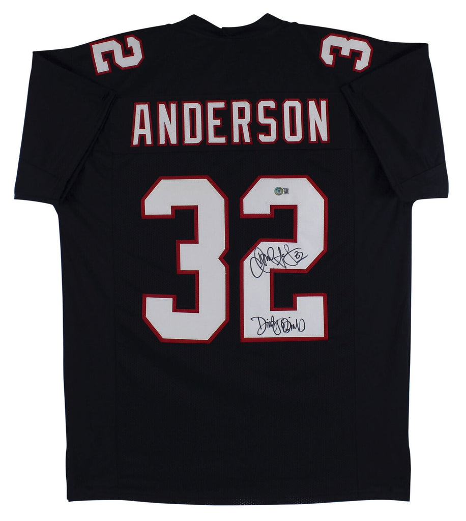 This Autographed Black Pro Style Jersey with the inscription of "Dirty Bird" has been Personally Signed by Jamal Anderson of the Atlanta Falcons. This item is 100% Authentic to include a hologram by Beckett Authentication Services. This item will come with the new Beckett Authentication hologram that has a scannable QR code rather than the traditional COA. If you would like to have a COA, you are welcome to reach out to Beckett for a printed certification once you receive your item. This is a BAS Witnessed Protection Program item which means a Beckett Authentication Service representative was present when this item was being signed. This is a stock item. We conducted an autograph signing with Jamal Anderson and we have several of these available. The one you will receive will be of equal quality to the one pictured. This item can be verified through BAS Witnessed. This is a X-Large sized, non-branded, custom-stitched Jersey.