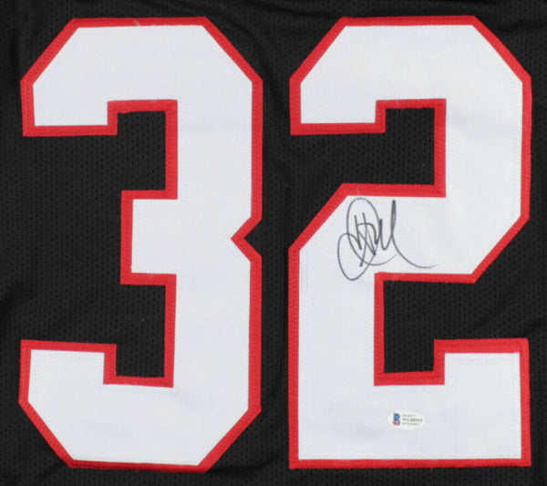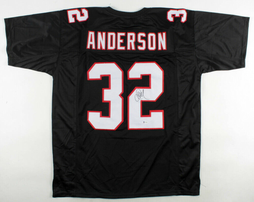 Custom on-field style jersey. Everything sewn on, size XL. Hand-signed by Jamal Anderson.The lot / autograph(s) includes an official Beckett Authentication Services serially-numbered hologram and matching COA for authenticity purposes. The signing of this item was witnessed by Beckett.Authentication: Beckett COA