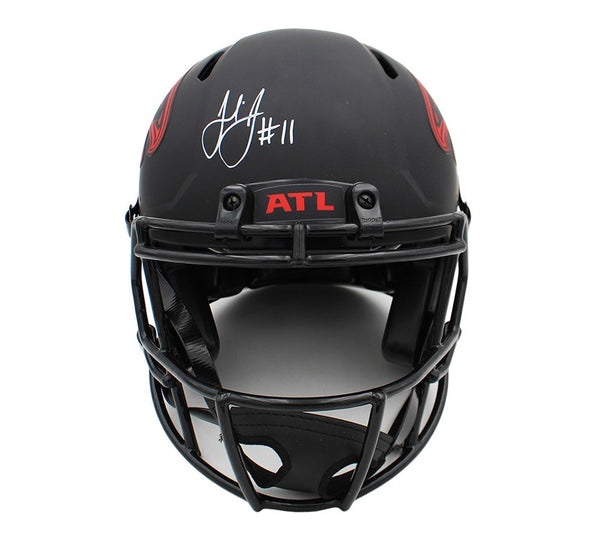 An Atlanta Falcons Speed Authentic Eclipse NFL Helmet hand signed by Julio Jones. The item and signature are in excellent condition. Julio is a wide receiver for the Atlanta Falcons. He played college football at Alabama, and in 2009, helped lead the Crimson Tide to an undefeated 14-0 season, including a victory in the 2010 BCS National Championship Game. He was drafted by the Atlanta Falcons sixth overall in the 2011 NFL Draft. AUTHENTICATION: The item has been tagged with a SmarTag powered by Prova Technology, which gives you digital access to the items authentication records, including a proof picture from the signing.