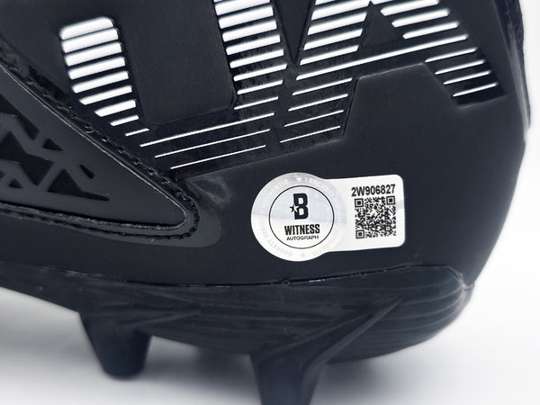 This is a pair of Black Under Armour Team Fierce MC Cleats that has been hand signed by Michael Penix Jr. Penix signed the right cleat. This item has been witnessed and certified authentic by Beckett Authentication (BAS) and comes with their tamper-proof witness hologram.