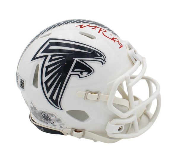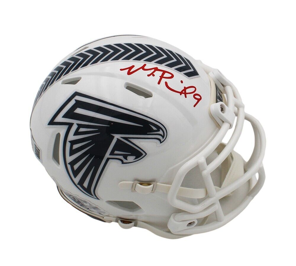 An Atlanta Falcons Speed Salute to Service 3 NFL Mini Helmet signed by Michael Penix Jr. The item and signature are in excellent condition. Michael is a quarterback and was the first round draft pick for the Atlanta Falcons in 2024. In college, he earned the Maxwell Award as well as First Team All American. AUTHENTICATION: The item is accompanied by a Beckett Serial Numbered and Databased Hologram - Picture of Michael from the signing.
