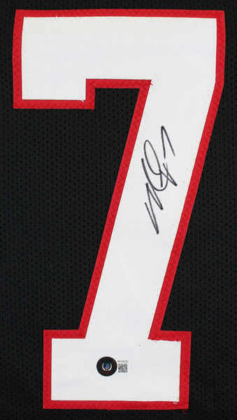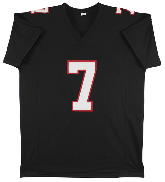 This Autographed Black Pro Style Jersey has been Personally Signed by Michael Vick of the Atlanta Falcons. This item is 100% Authentic to include a hologram by Beckett Authentication Services. This item may come with the new Beckett Authentication hologram that has a scannable QR code rather than the traditional COA. If you would like to have a COA, you are welcome to reach out to Beckett for a printed certification once you receive your item. This is a BAS Witnessed Protection Program item which means a Beckett Authentication Service representative was present when this item was being signed. We conducted an autograph signing with Michael Vick where multiples of the same item were signed. While the photographs are representative of this item, the size, placement and strength of the signature may vary. Each item is hand signed, therefore, each autograph is unique. This item can be verified through BAS Witnessed. This is a X-Large sized, non-branded, custom-stitched Jersey.