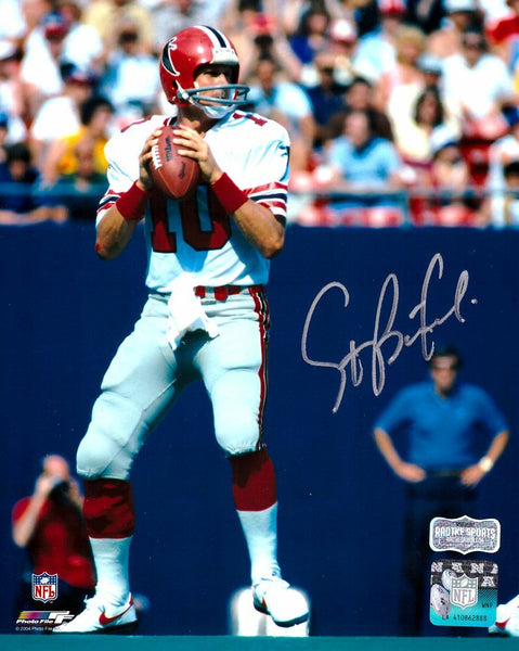 An Atlanta Falcons Throwback Unframed 8x10 Photo hand signed by Steve Bartkowski. The item and signature are in excellent condition. Steve is a 2x Pro Bowler, in the Atlanta Falcons Ring of Honor and he was the NEA NFL Rookie of the Year (1975). AUTHENTICATION: The item is accompanied by a Certificate of Authenticity - Serial Numbered and Databased Hologram - Picture of Steve from the Signing
